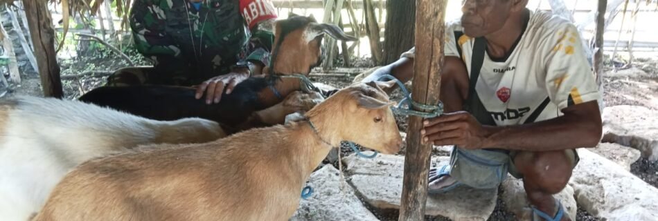 Babinsa Kodim 1621 TTS Serda Basuki Laksanakan Pengecekan Hewan Ternak Bantuan Ketahanan Pangan Dari Ketua Persit KCK CAB XX DIM 1621 TTS
