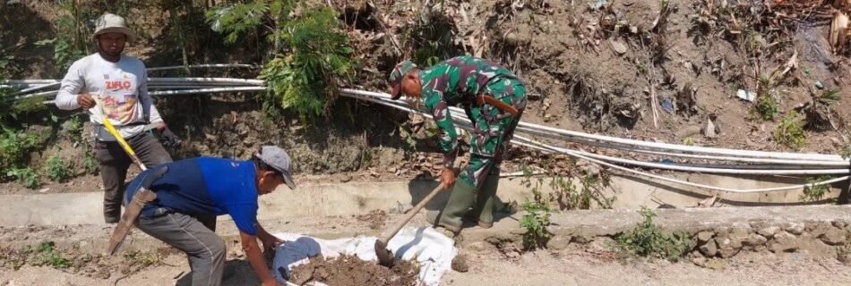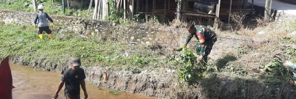 Anggota koramil 1403-13/Wotu Bersama Dengan Masyarakat Membersihkan Sungai Bawalipu