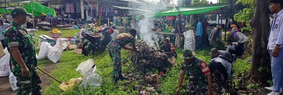 Koramil 05/Pekat Gelar Karya Bakti Bersihkan Pasar Sambut Hari Juang Kartika TNI AD 2024