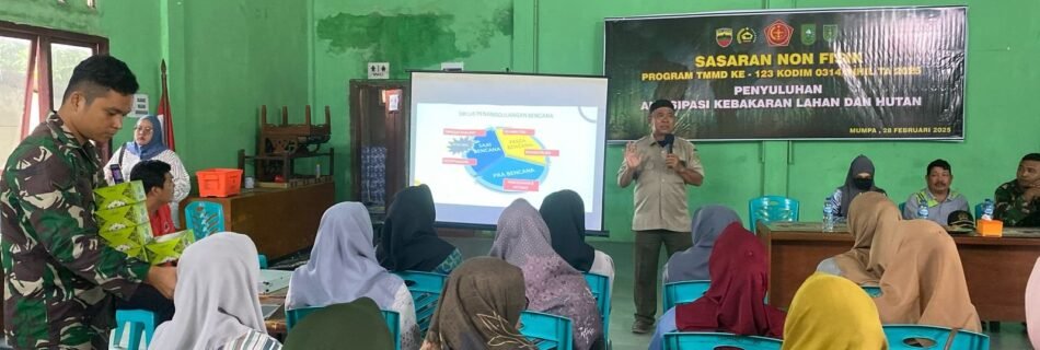 INHIL – Warga Desa Mumpa, Kecamatan Tempuling, menunjukkan antusiasme tinggi saat mengikuti penyuluhan pencegahan kebakaran hutan dan lahan (Karhutla) yang digelar Kodim 0314/Inhil dalam rangka program non fisik TNI Manunggal Membangun Desa (TMMD) ke-123, Jumat (28/2/2025). Bertempat di Gedung Serba Guna “Tuah Negri”, kegiatan ini menghadirkan berbagai narasumber, termasuk perwakilan Kodim 0314/Inhil, Dinas BPBD Inhil, …