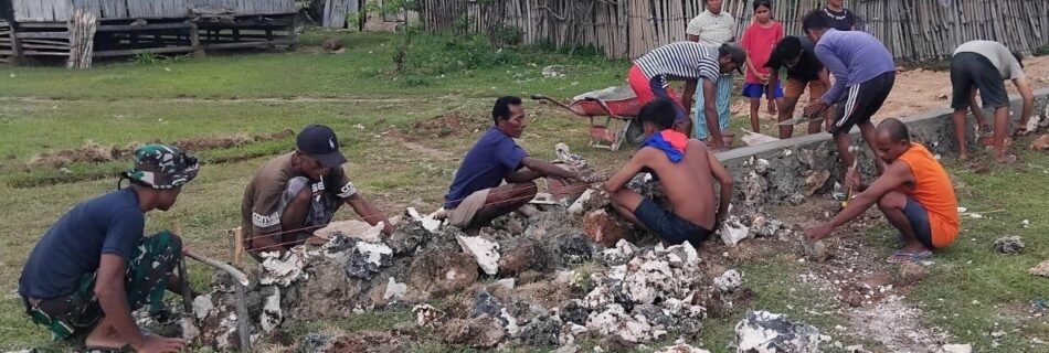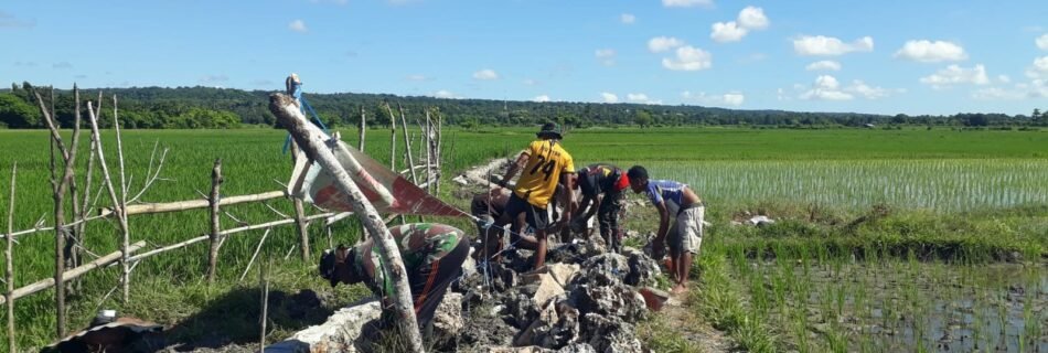 Satgas TMMD Kodim 1601/Sumba Timur dan Warga Bahu-Membahu Bangun Jalan Menuju Gereja