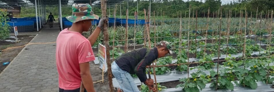 Satgas TMMD ke-124 Kodim 1012/Buntok Pasang Jaring Buah di Lahan Ketahanan Pangan