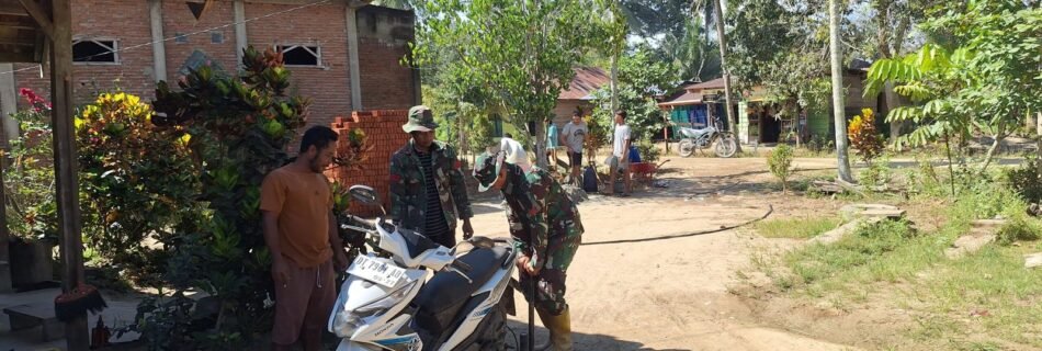 Kesigapan Anggota Satgas TMMD 125 Kodim 1417/Kendari Bantu Pompa Ban Motor Warga