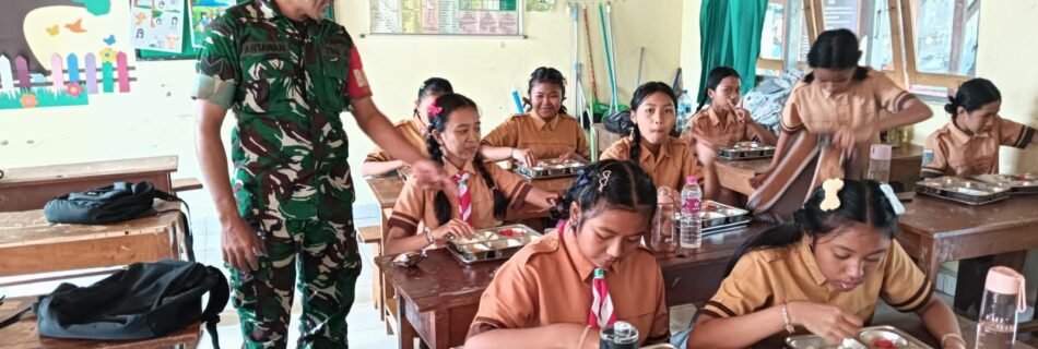 Anak-Anak Tampak Ceria, Babinsa Dampingi Penyaluran MBG di Bangli