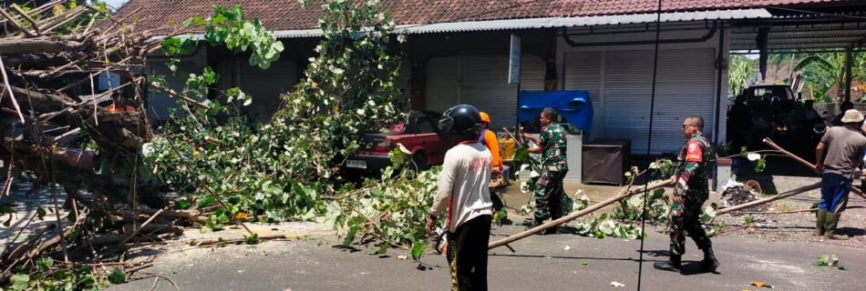 Tanggap Bencana, Aparat TNI Polri Dan BPBD Tangani Pohon Tumbang Di Jalan Raya Gunaksa Kecamatan Dawan