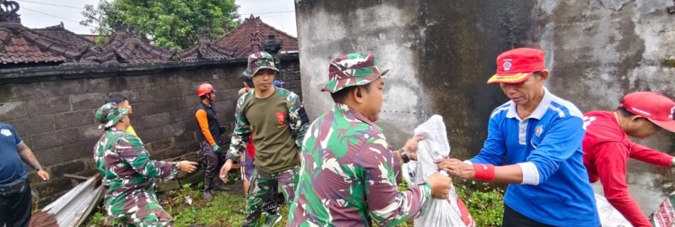 TNI Untuk Rakyat, Kodim Klungkung Gotong Royong Bersihkan Puing Kebakaran Di Banjar Budaga