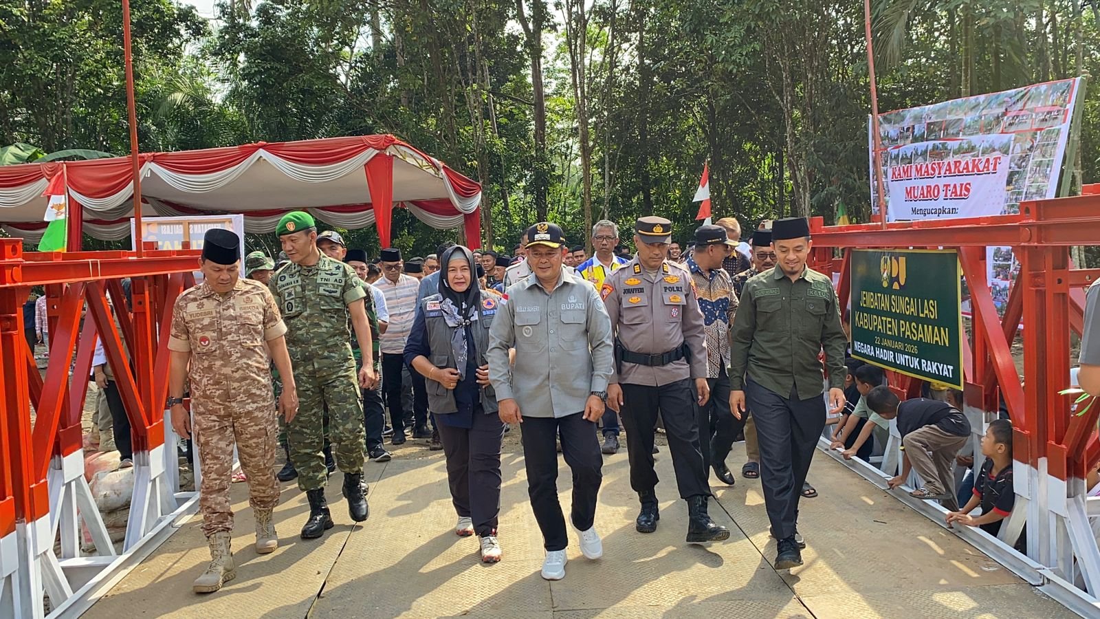 Kehadiran jembatan sepanjang 30 meter dengan tipe 2-1 ini menjadi solusi krusial dalam menghubungkan ruas jalan Muaro Tais menuju Kampung Tongah yang sebelumnya sulit diakses. Dengan lebar jembatan mencapai 4,55 meter, struktur ini dirancang kokoh menggunakan material inventaris Balai Jalan Pelaksanaan Nasional Kementerian PU. Keberhasilan pembangunan ini juga tidak lepas dari dukungan penuh kekuatan bantuan dari Yonif TP 844/KB, Bekangdam XX/TIB, Kesdam XX/TIB, serta koordinasi intensif dengan Babinsa Koramil setempat.