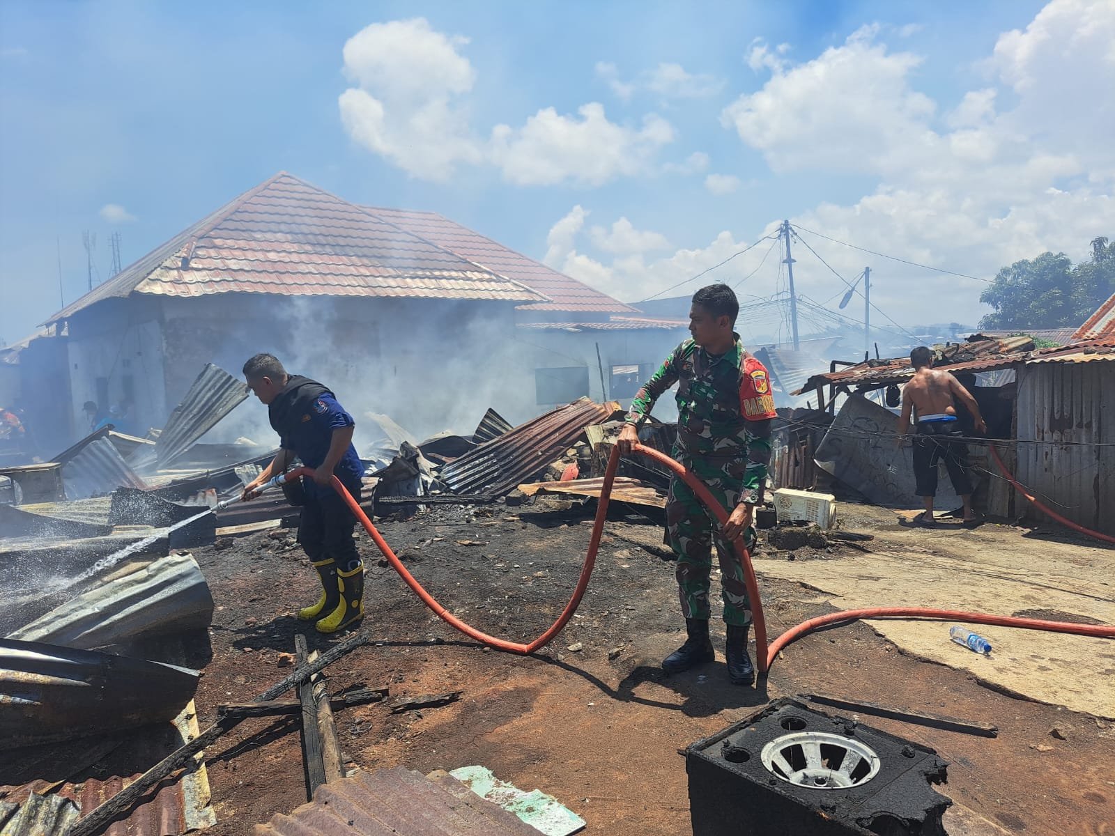 Kebakaran tersebut menghanguskan sebanyak 14 unit rumah semi permanen milik warga. Mendapat informasi kejadian, Praka Meuraksa segera bergerak menuju lokasi bersama Kapolsek Singkil Ipda Matrial Barahama S.H, M.H Dan Anggota Polsek Singkil, BPBD Kota Manado, Pemerintah Kelurahan, dan Masyarakat setempat bahu-membahu melakukan upaya pemadaman.