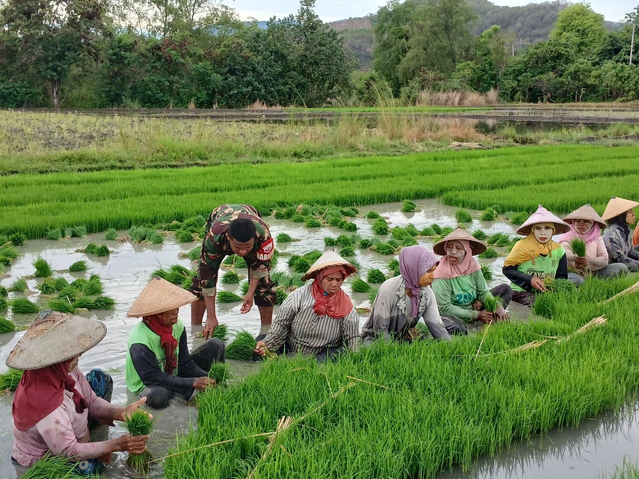 Kegiatan pendampingan tersebut berlangsung di Desa Kembang Mekar, Kecamatan Sambi Rampas, Kabupaten Manggarai Timur. Kehadiran Babinsa di tengah-tengah petani tidak hanya membantu percepatan pekerjaan, tetapi juga memberikan motivasi dan semangat bagi masyarakat tani setempat.