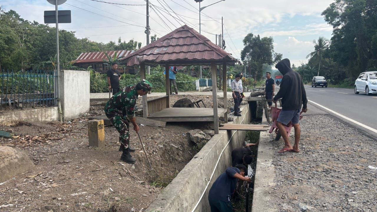Antisipasi Banjir, Babinsa Lawawoi dan Staf UPPKB Datae Gelar Karya Bakti Bersihkan Saluran Air ​