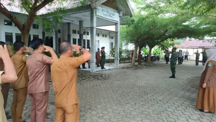 ACEH JAYA – Dalam rangka memperkuat koordinasi dan kebersamaan antarinstansi, aparatur pemerintahan di Kecamatan Teunom melaksanakan apel gabungan yang digelar di halaman Kantor Kecamatan Teunom, Kabupaten Aceh Jaya, Senin (06/04/2026).