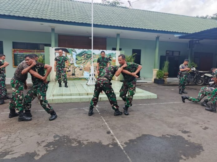 Tabanan – Kodim 1619/Tabanan menggelar latihan Bela Diri Taktis (BDT) yang berlangsung di halaman Makodim 1619/Tabanan pada hari Senin (6/5/2025). Kegiatan ini dipimpin langsung oleh Pgs Pasiops Kodim 1619/Tabanan, Kapten Cke I Gede Resmanto, dan diikuti oleh seluruh personel militer di jajaran Kodim.