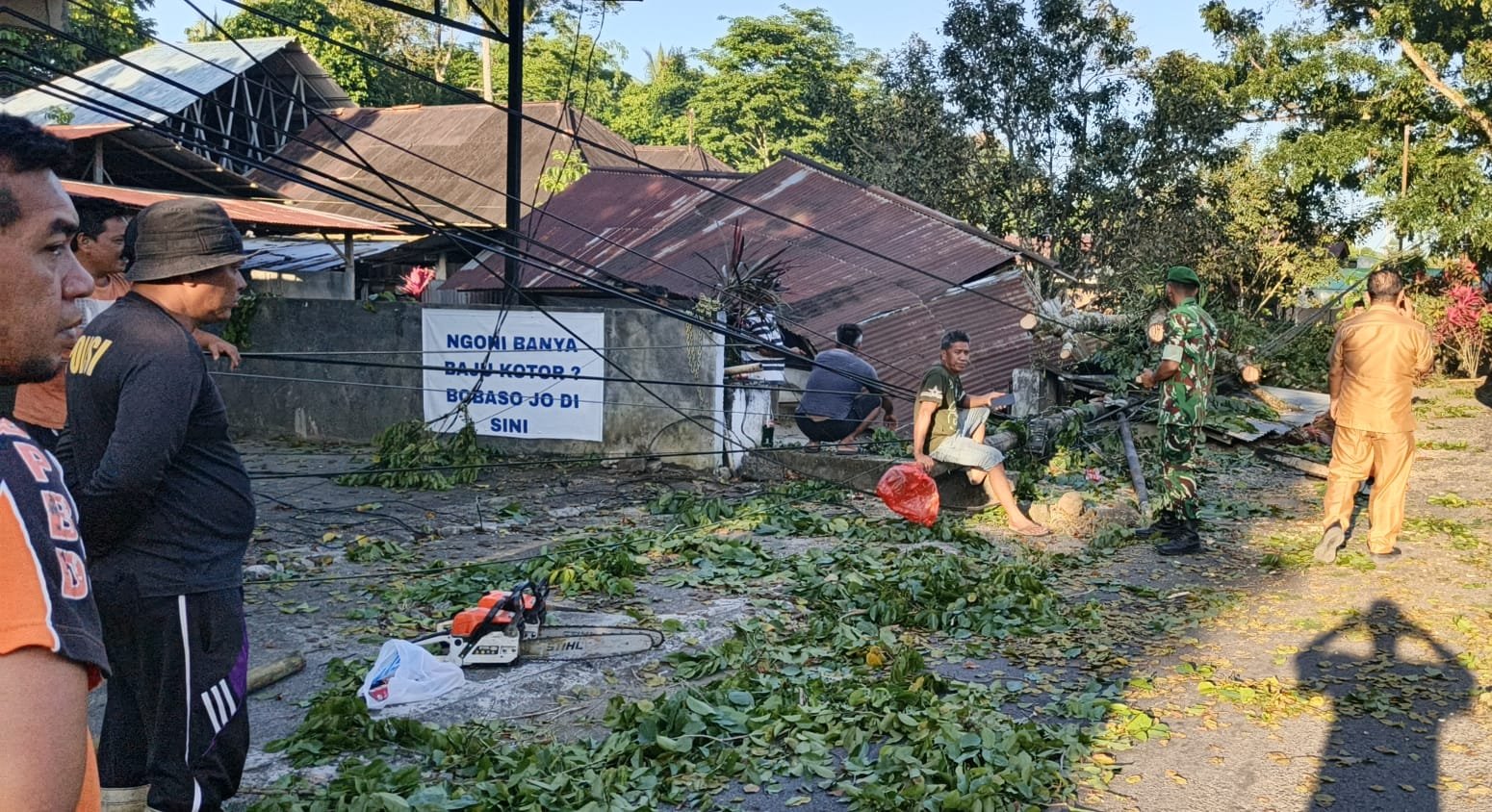 Peristiwa pohon tumbang diduga akibat cuaca buruk yang melanda wilayah tersebut, mengakibatkan pohon besar tumbang dan menimpah 1 Unit Rumah warga milik Keluarga Opolus-Longdong dan aliran listrik terputus serta arus lalu-lintas terganggu sehingga menghambat akses jalan warga. Mengetahui kejadian itu, Babinsa Desa Kolongan Koramil 1310-04/Dimembe Serka Sutrisno, langsung bergerak cepat menuju lokasi untuk melakukan penanganan bersama aparat desa dan masyarakat.