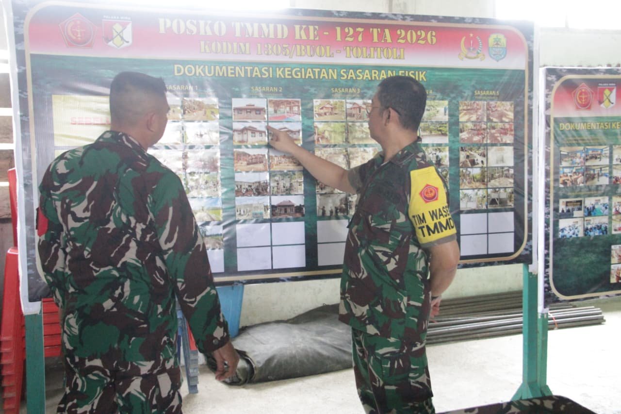Tolitoli – Ketua Tim Wasev TMMD ke-127, Hadi Purwosubroto, melakukan pengecekan langsung terhadap kesiapan Posko TMMD di Desa Oyom, Kecamatan Lampasio, Kabupaten Tolitoli, Rabu (4/3/2026). Peninjauan ...