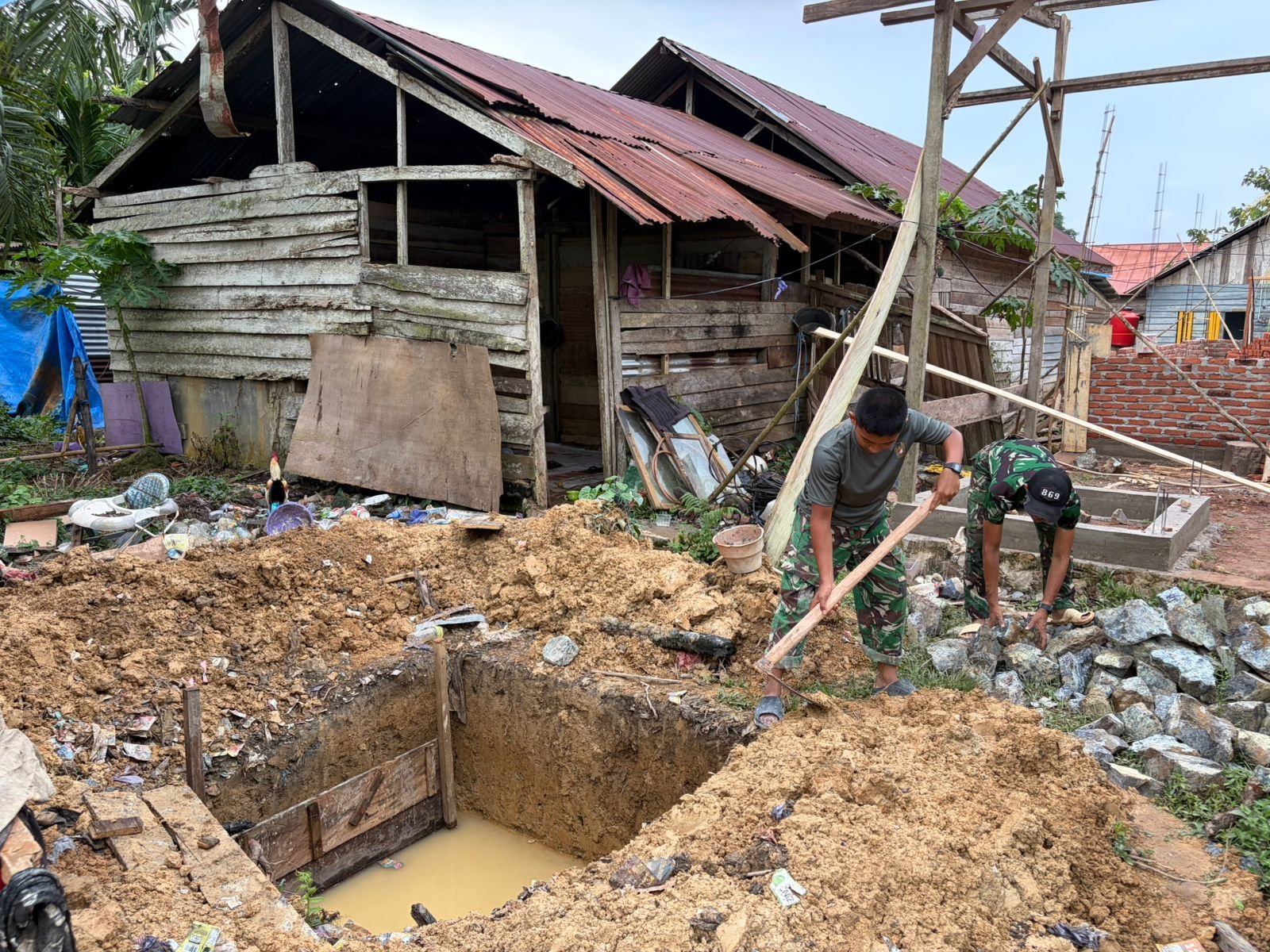 Amolame, Rabu (29/4/2026) — Pembangunan fasilitas mandi, cuci, kakus (MCK) dalam program TMMD ke-128 Kodim 1430/Konawe Utara terus berjalan. Kali ini, personel Satgas bersama warga Desa Amolame melaksanakan tahap awal berupa penggalian tanah untuk pembangunan MCK milik Bapak Hasruddin.