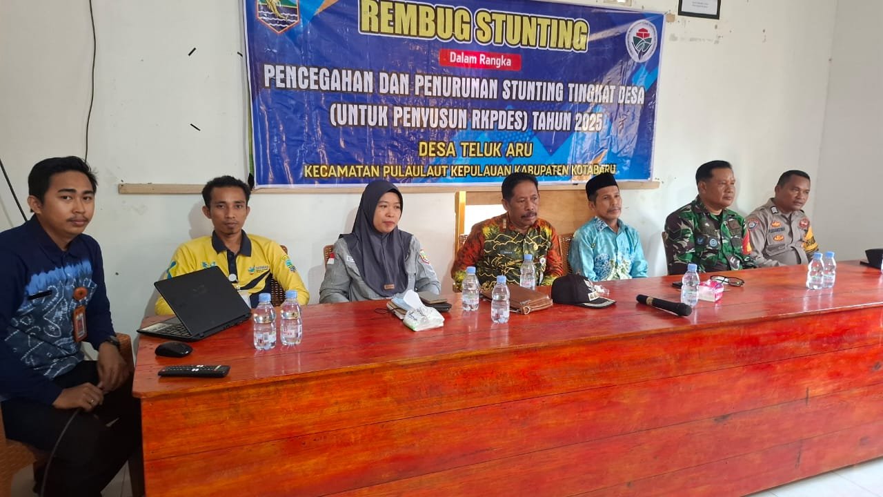 KOTABARU – Upaya percepatan pencegahan dan penanganan stunting di Desa Teluk Aru, Kecamatan Pulau Laut Kepulauan, mendapat dukungan penuh dari jajaran TNI, khususnya Koramil setempat. Hal ini ditunjukkan dengan kehadiran Serka Rusdi, Babinsa Koramil 1004-05/PLS, mewakili Danramil, dalam kegiatan Rembug Stunting yang digelar di Kantor Desa Teluk Aru pada Jumat pagi, 11 Juli 2025.