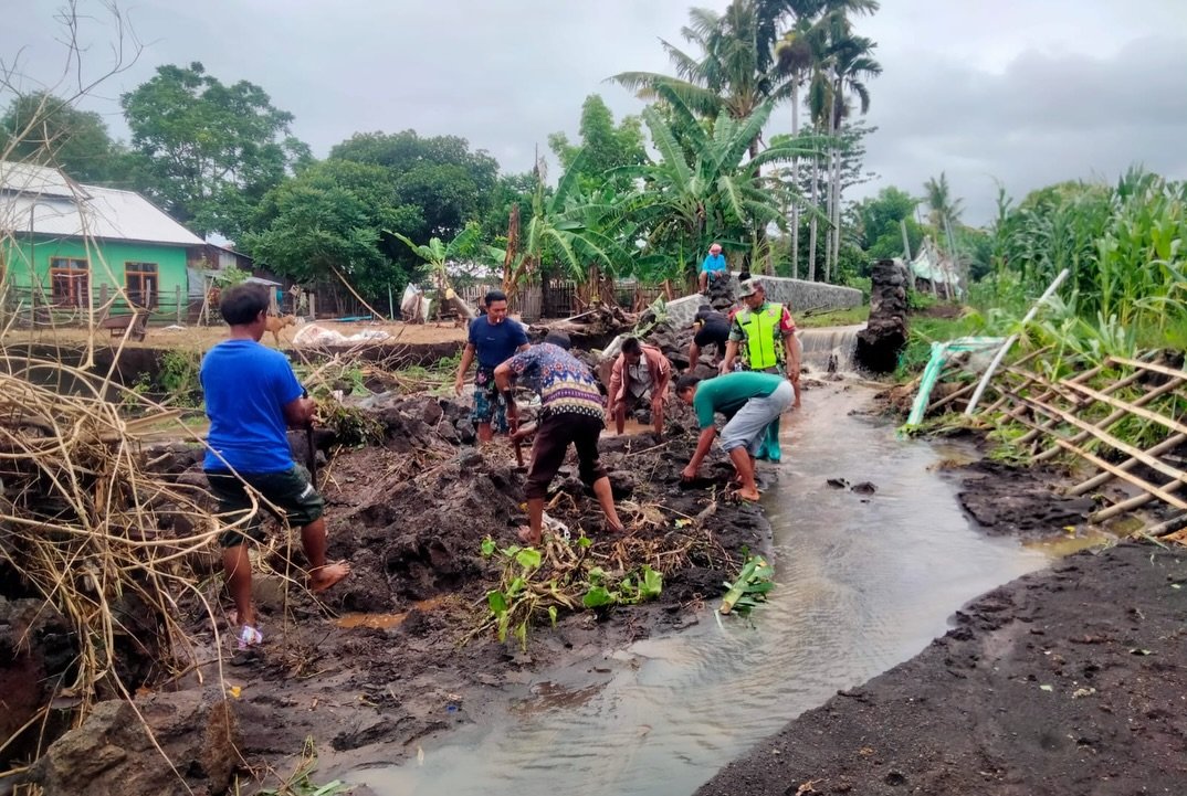 Babinsa 1608-05/Donggo Bersama Warga Gotong Royong Atur Jalur Air untuk Cegah Banjir di Labuan Kananga