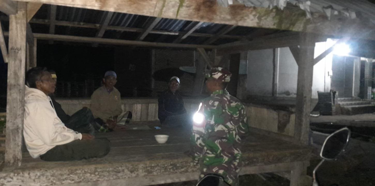 Dalam pelaksanaan patroli, Babinsa menyempatkan diri untuk berdialog langsung dengan warga yang sedang melaksanakan ronda malam guna memberikan pemahaman tentang pentingnya ronda sebagai salah satu upaya menjaga keamanan lingkungan secara mandiri dan berkelanjutan.