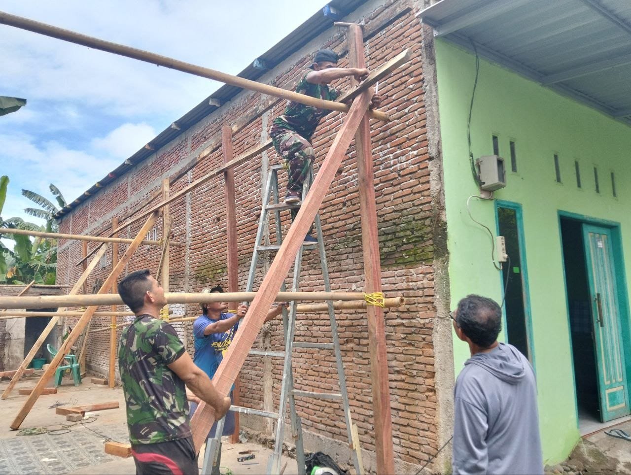 Bangli – Guna memudahkan aktivitas masyarakat, Babinsa Koramil 1626-04/Kintamani Serka Wayan Darmawan membantu pelaksanaan kegiatan pengecoran jalan (rabat beton) di desa binaannya.