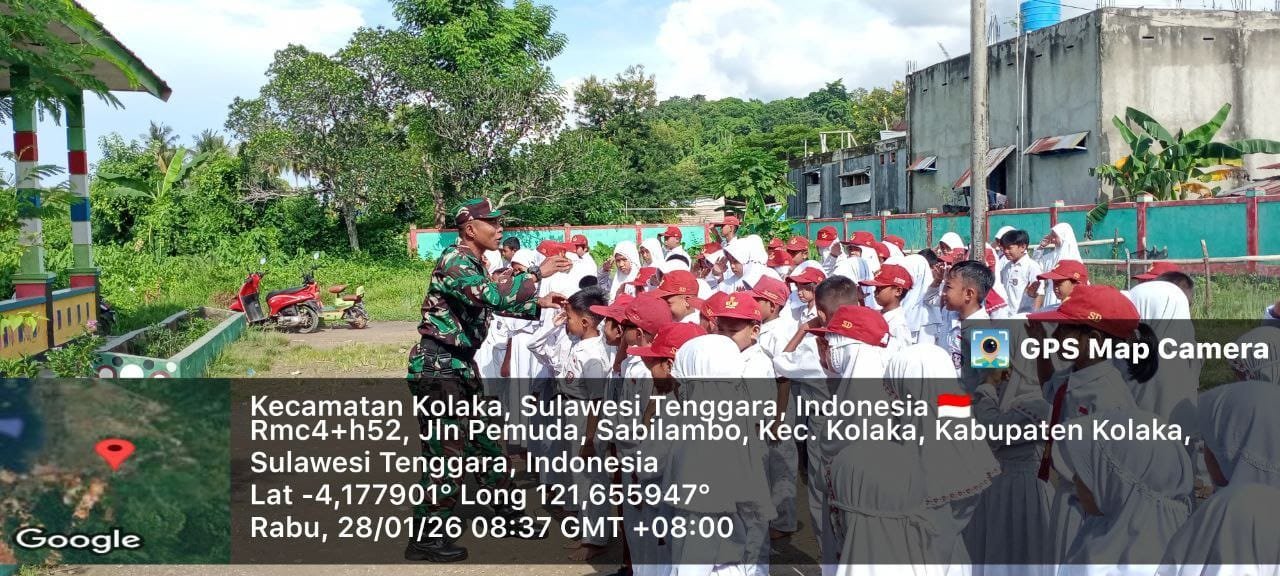 Kolaka – Rabu (28/1/2026). Serka Hasanuddin melaksanakan kegiatan pembinaan kepada siswa-siswi di SD Negeri 2 Sabilambo dengan memberikan materi Peraturan Baris Berbaris (PBB) dan Pembinaan Perilaku Mental (PPM).