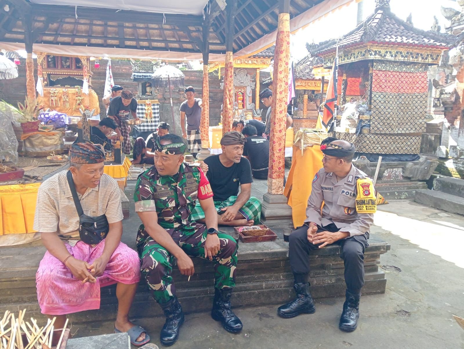 Dalam kesempatan tersebut, Sertu Komang Yetrawan menyampaikan pentingnya menjaga keamanan dan ketertiban selama pelaksanaan Piodalan. “Kami mengimbau kepada seluruh masyarakat agar bersama-sama menjaga situasi tetap kondusif, sehingga kegiatan Piodalan dapat berlangsung dengan aman, tertib, dan lancar,” ujarnya.