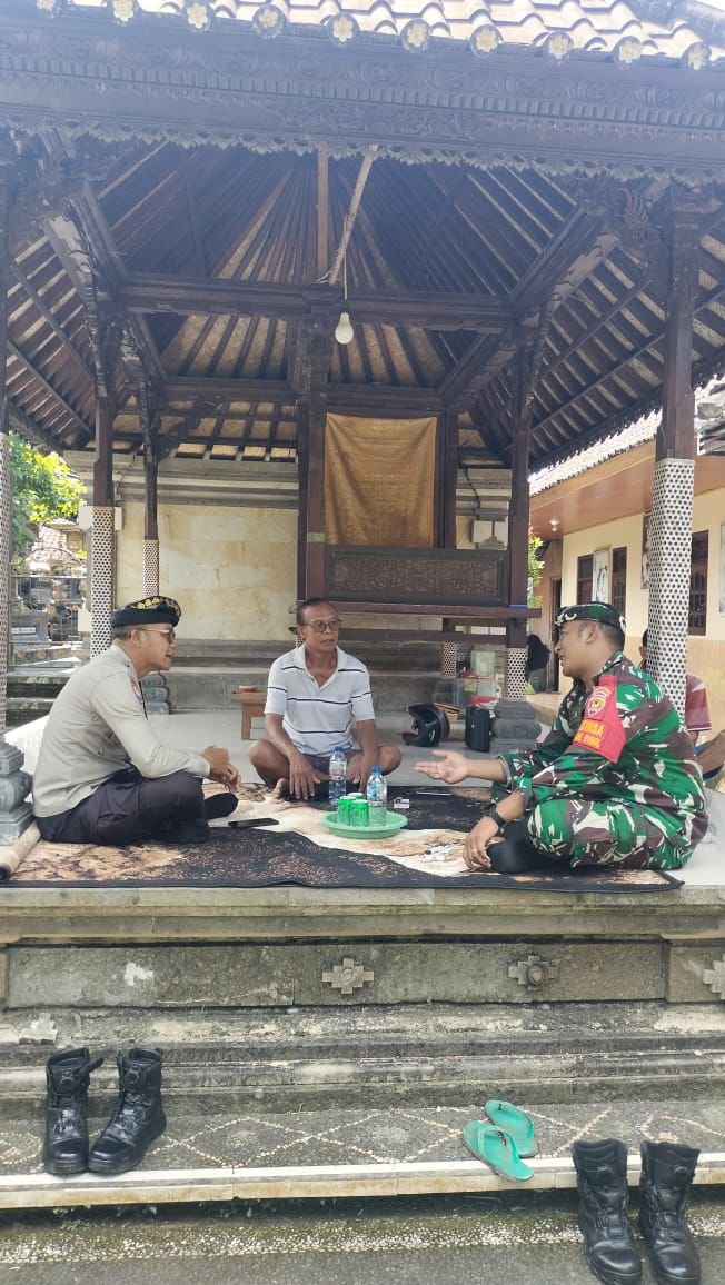 Dalam kesempatan tersebut, Sertu Komang Yetrawan menyampaikan pentingnya menjaga kondusifitas lingkungan serta mengimbau masyarakat agar tetap waspada terhadap kondisi cuaca yang tidak menentu. Ia juga mengajak seluruh elemen masyarakat untuk selalu menjalin komunikasi yang baik serta segera melaporkan setiap kejadian di wilayah kepada Babinsa maupun aparat terkait. “Dengan adanya komunikasi yang baik serta koordinasi yang solid, setiap permasalahan di wilayah dapat segera diantisipasi dan ditangani dengan cepat dan tepat,” ujarnya.