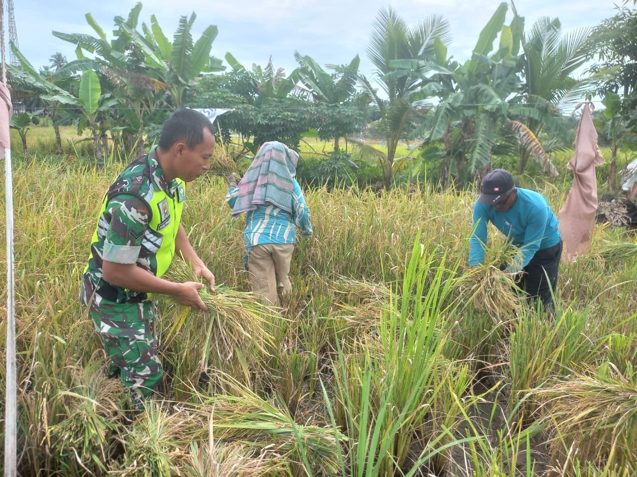 Pada pelaksanaannya, Serda Darwis Vera terjun langsung ke sawah-sawah milik petani untuk memantau secara detail pertumbuhan tanaman padi yang sebagian besar sudah memasuki fase menguning, menandakan masa panen yang semakin dekat. Ia dengan cermat mengamati kondisi tanaman dan berdialog dengan para petani setempat.