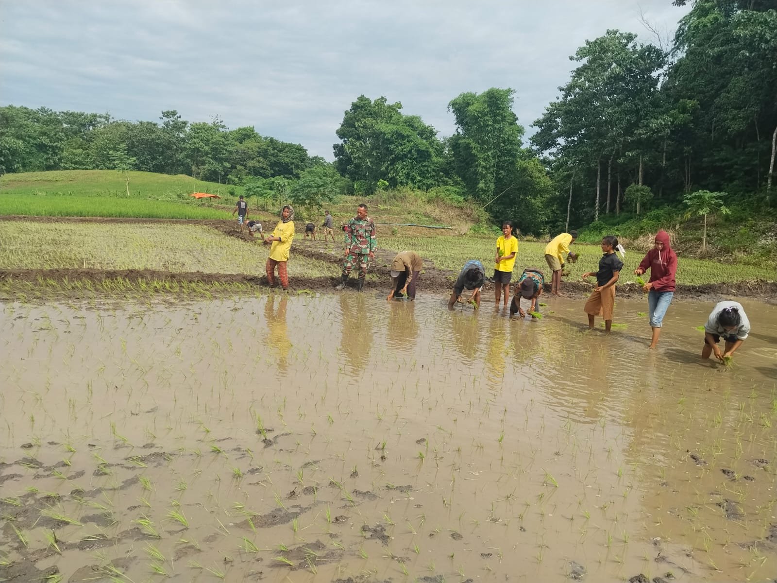 Para petani setempat menyambut baik kehadiran Babinsa yang turut turun langsung ke sawah membantu proses penanaman padi. Menurut mereka, keterlibatan Babinsa memberikan dorongan semangat dan rasa kebersamaan dalam bekerja.