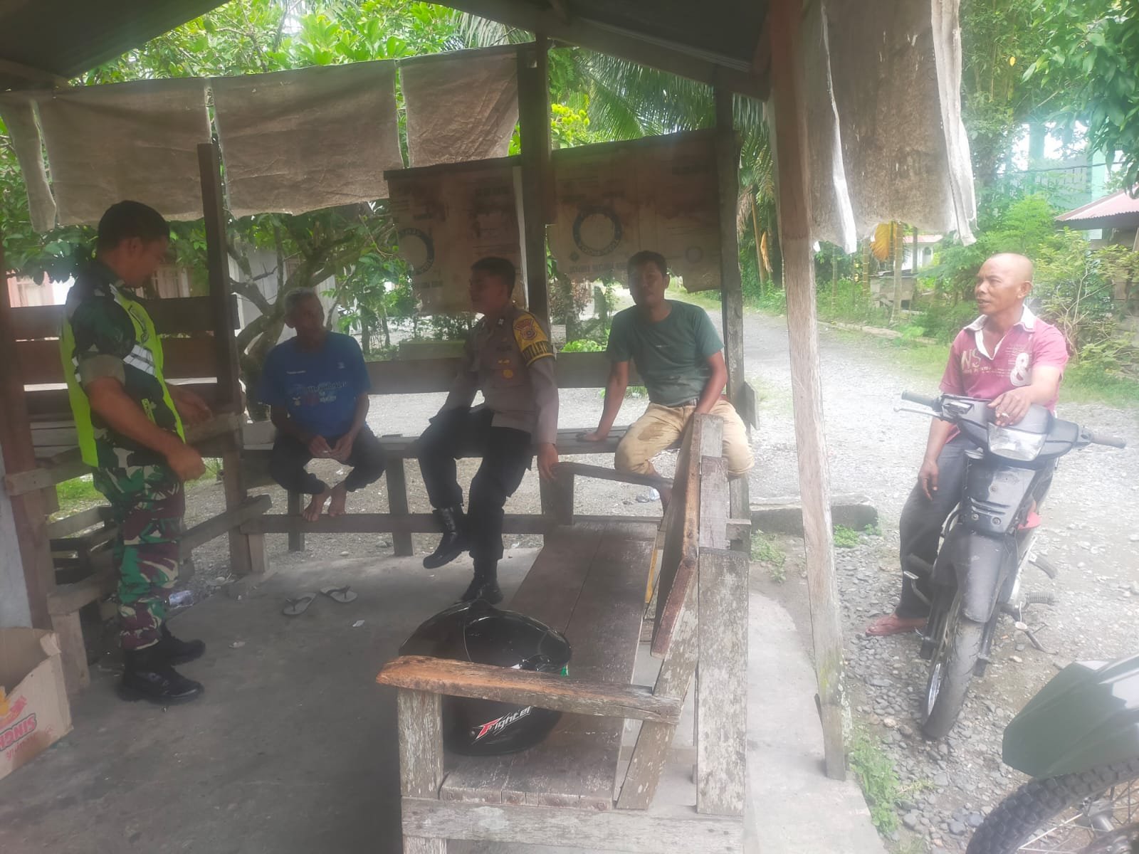 ACEH BARAT – Dalam rangka meningkatkan keamanan dan kenyamanan masyarakat, Sertu Buchari Muslim selaku Babinsa Koramil 09/Samatiga bersama Bhabinkamtibmas Aiptu Topik melaksanakan kegiatan komunikasi sosial (komsos) dengan warga Desa Deuah, Kecamatan Samatiga, Kabupaten Aceh Barat. Kegiatan ini berlangsung di balai desa setempat dan dihadiri oleh perangkat desa, tokoh masyarakat, tokoh pemuda, serta sejumlah warga, Jumat (10/10/2025).