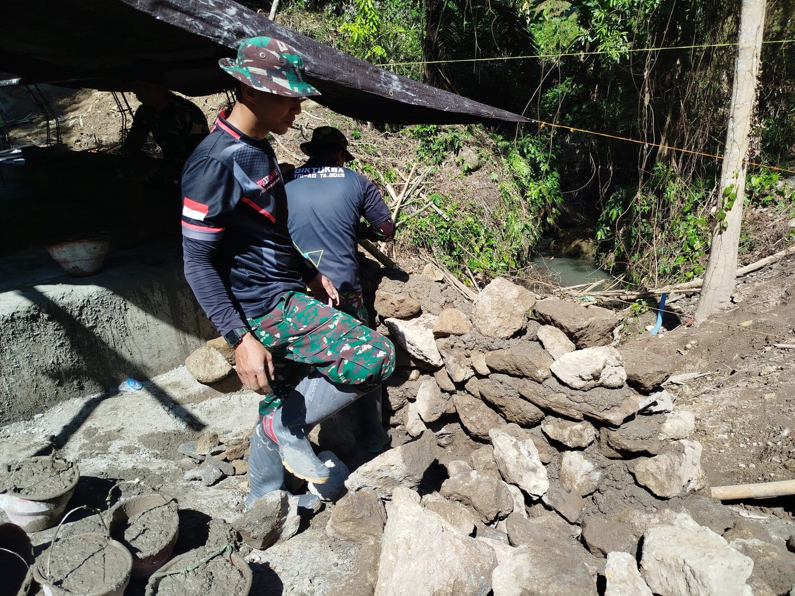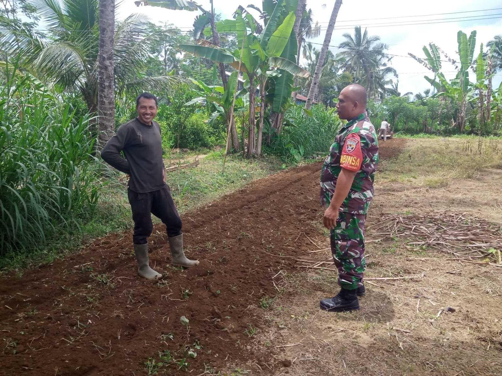 Babinsa dan Bhabinkamtibmas Desa Tiga Pantau Pengerjaan Rabat Beton Jalan Usaha Tani