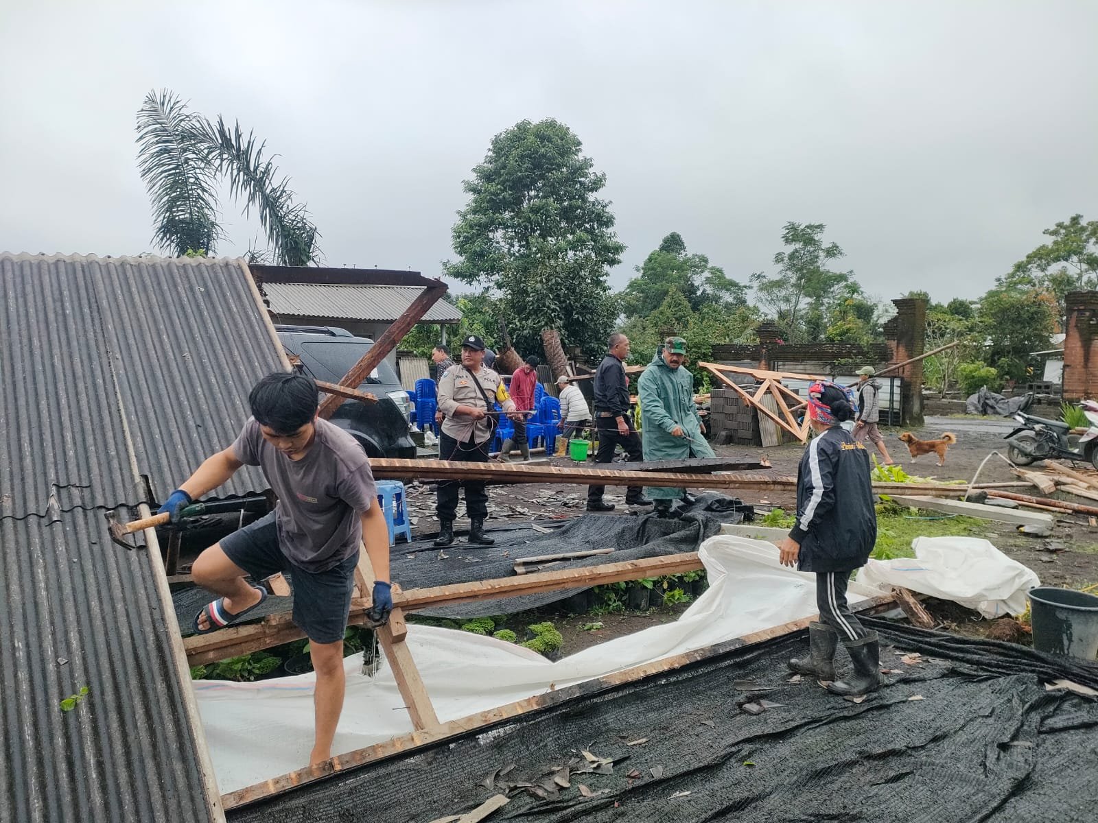 Babinsa dan Bhabinkamtibmas Desa Tiga Tanggap Atasi Kerusakan Rumah Akibat Hujan dan Angin Kencang