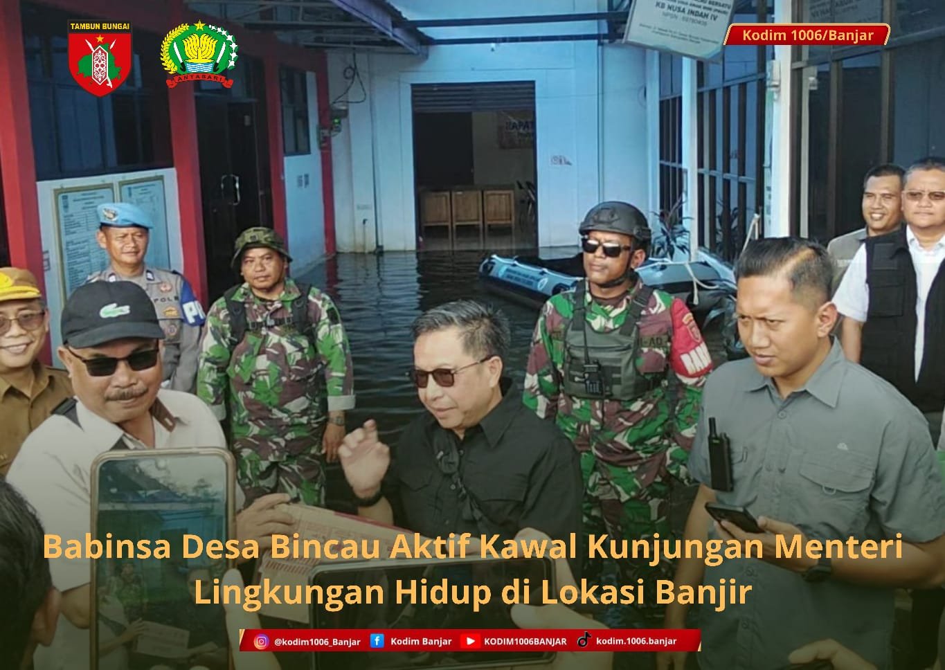 Kunjungan kerja tersebut dilaksanakan dalam rangka peninjauan langsung lokasi terdampak banjir, khususnya di kawasan Jalan Melati Desa Bincau. Sejak kedatangan rombongan Menteri Lingkungan Hidup RI di Kabupaten Banjar, Babinsa Desa Bincau, Serda Dedi Irawan, telah bersinergi dengan unsur Polri, pemerintah daerah, serta perangkat desa untuk mempersiapkan lokasi dan memastikan kegiatan berjalan aman, tertib, dan kondusif.