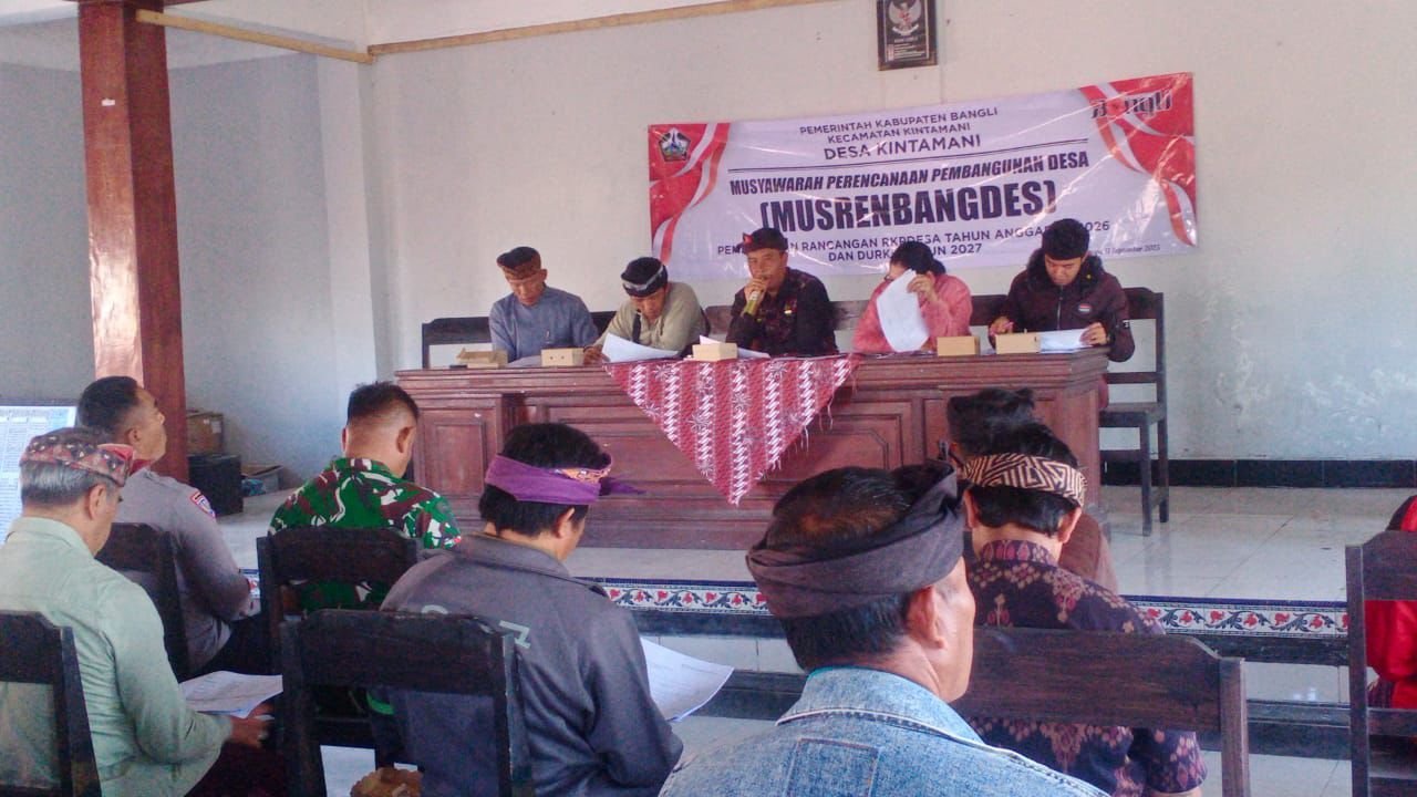 Kegiatan yang berlangsung dari pukul 09.00 hingga 11.50 WITA ini membahas penyusunan Rancangan Rencana Kerja Pemerintah (RKP) Desa Kintamani Tahun 2026 serta Daftar Usulan Rencana Kerja Pemerintah (DURKP) Tahun 2027.