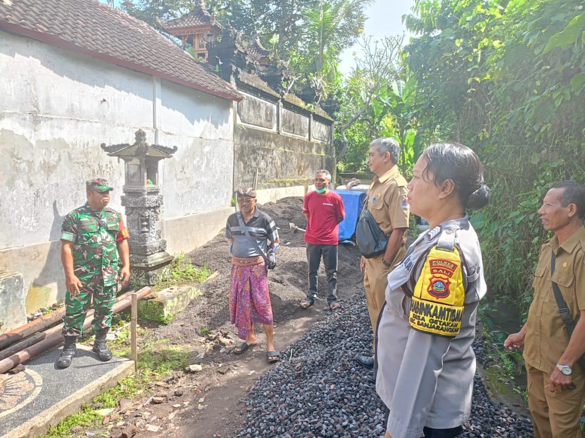 Klungkung,- Babinsa Getakan Koramil 1610-02/Banjarangkan Serma Wayan Sukadana mendampingi Camat Banjarangkan dan Kades Getakan melaksanakan peninjauan perambatan beton di Dusun Beneng, Desa Getakan, Kecamatan Banjarangkan, Selasa ( 27/05/25 ).