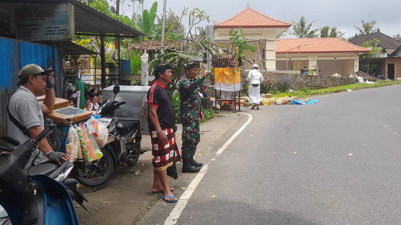 Babinsa Jehem mengatakan Kami bersinergi dengan Bhabinkamtibmas dan Pecalang Banjar setempat mengamankan dan mengatur lalu lintas demi lancarnya kegiatan upacara Mecaru tersebut