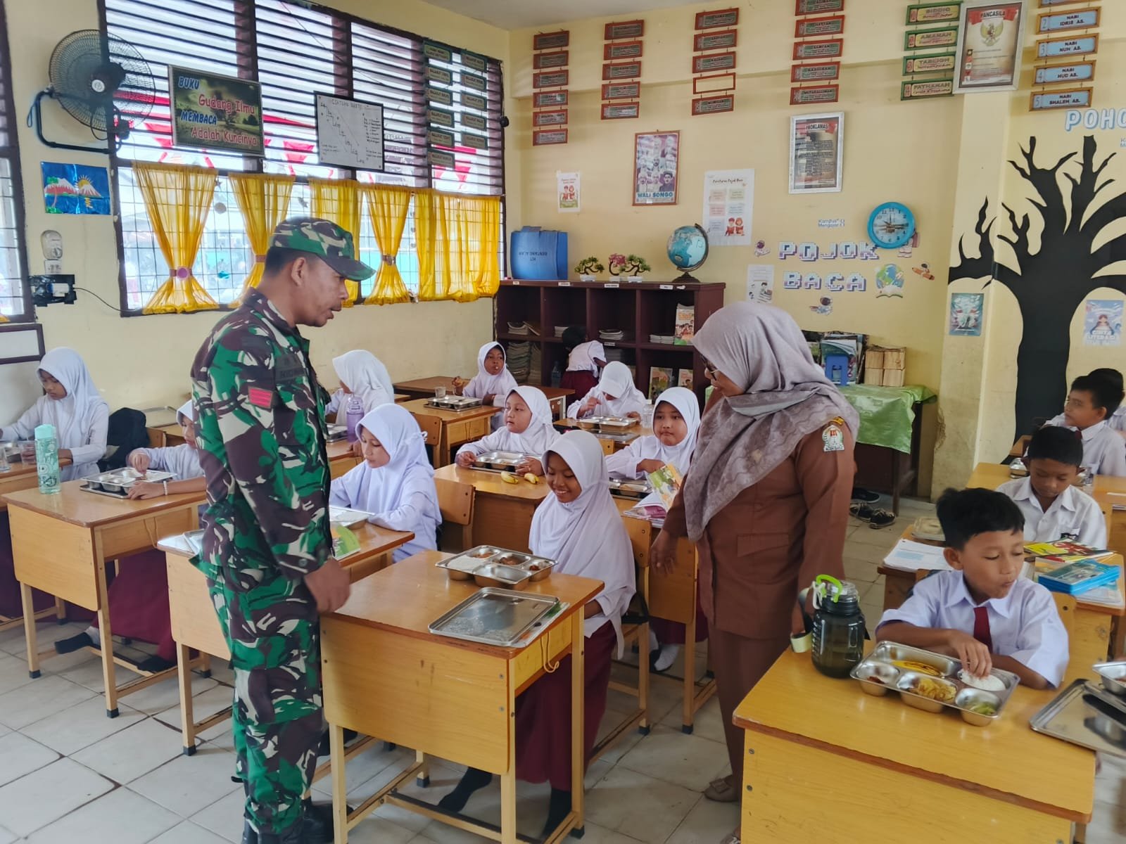 Kegiatan serupa juga dilakukan oleh Babinsa lainnya, seperti Sertu Eriska yang turut memantau pelaksanaan program makan bergizi gratis di SDN 02 Desa Kampung Belakang. Hal ini menunjukkan komitmen TNI dalam mendukung program pemerintah untuk menciptakan generasi muda yang sehat, cerdas, dan berdaya saing.