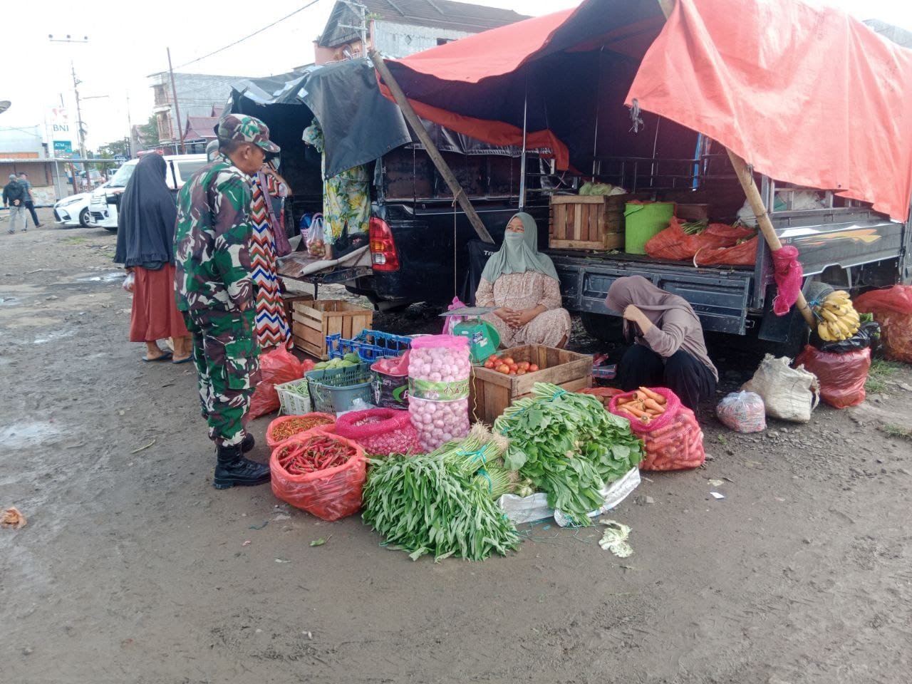 Babinsa Kelurahan Baula Ramil 02/Tellu Limpie Pantau Ketersediaan dan Harga Bahan Pokok di Pasar Sentral Amparita Sidrap