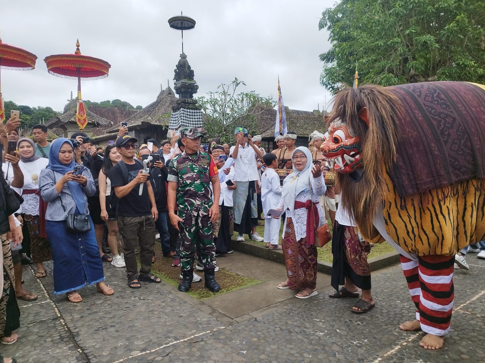 Bangli – Dalam rangka memberikan rasa aman dan menjaga kondusivitas wilayah selama perayaan Hari Raya Natal Tahun 2025 serta menyambut Tahun Baru 2026, Babinsa Kelurahan Kubu Koramil 1626-01/Bangli Kodim 1626/Bangli, Serma Wayan Sujana, melaksanakan pemantauan sekaligus pengamanan kegiatan Parade Barong Macan yang diselenggarakan oleh Pengelola Obyek Desa Wisata Penglipuran dan Kegiatan tersebut berlangsung di Obyek Desa Wisata Penglipuran, Kelurahan Kubu, Kecamatan/Kabupaten Bangli. Sabtu (27/12/25).