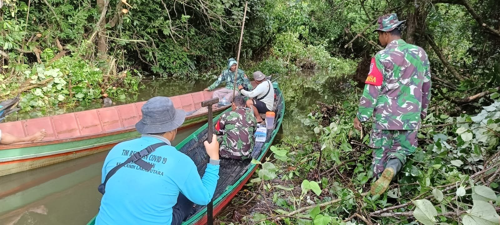 Kegiatan tersebut dilakukan dengan menyusuri aliran sungai menggunakan perahu kecil bermesin yang oleh warga setempat biasa disebut ketinting. Bersama masyarakat, para Babinsa memotong ranting, membersihkan semak belukar, serta menyingkirkan tanaman liar yang menghambat jalur transportasi air.