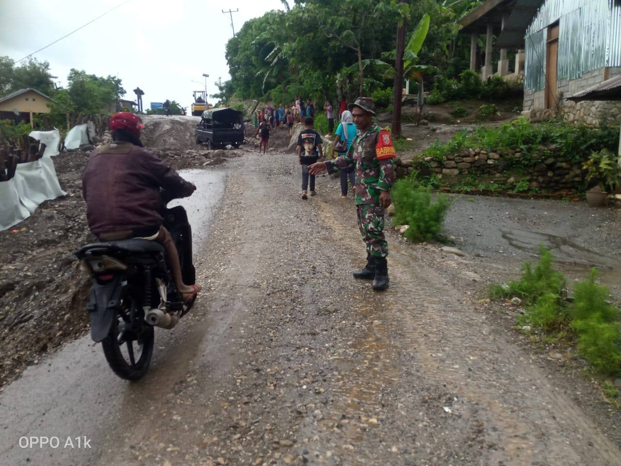 Menyikapi kondisi tersebut, Babinsa Desa Ekin Koramil 1605-03/Weluli, Serka Yosea Dael, turun langsung ke lokasi longsor pada Rabu, 18 Desember 2025. Kehadiran Babinsa bertujuan untuk memantau secara langsung kondisi jalan sekaligus membantu warga, khususnya pengendara sepeda motor, yang melintasi jalur tersebut.