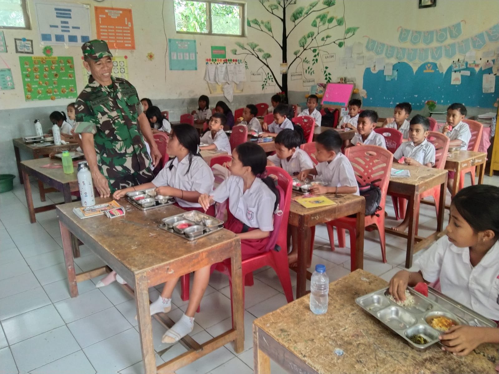 Dalam pelaksanaannya, Serma M. Saidin berkoordinasi dengan pihak sekolah dan petugas terkait guna memastikan jumlah serta kualitas makanan yang dibagikan memenuhi standar gizi dan kebersihan, sehingga dapat menunjang kesehatan serta tumbuh kembang peserta didik.