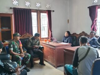 Bangli – Menjelang perayaan Hari Raya Nyepi Caka 1947, Babinsa Desa Bunutin, Koramil 01/Bangli, Kodim 1626/Bangli, Peltu I Ketut Udayana bersama Bhabinkamtibmas Desa Bunutin, Polsek Bangli, Bripka I Nyoman Padmayana melaksanakan koordinasi dengan Bendesa Adat Guliang Kawan, Sang Nyoman Peria, guna membahas persiapan serta pengamanan pengarakan ogoh-ogoh saat pengerupukan bertempat di Banjar Adat Guliang Kawan, Kecamatan Bangli. Senin (03/03/25).