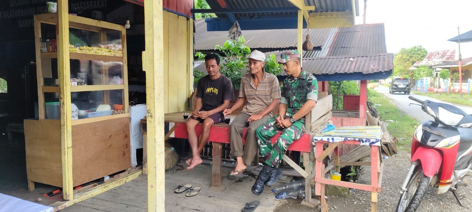 Aceh Jaya – Babinsa Koramil 01/Jaya Kodim 0114/Aceh Jaya, Serka Teguh, melaksanakan komunikasi sosial (komsos) bersama warga Desa Bak Paoh, Kecamatan Jaya, Kabupaten Aceh Jaya. Kegiatan tersebut berlangsung dengan penuh keakraban bersama Bapak Samsudin (70) dan Sdr. Wandi (39), membahas seputar usaha peternakan yang sedang dijalankan masyarakat, Kamis (tanggal menyesuaikan).