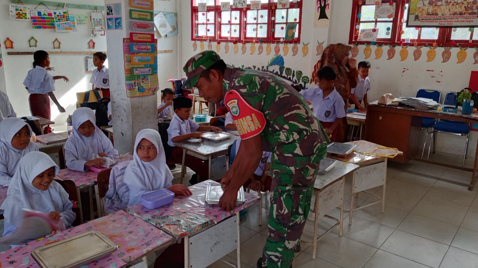 Babinsa Koramil 01/Jaya Pantau Distribusi Makanan Bergizi di SD Negeri 1 Jaya