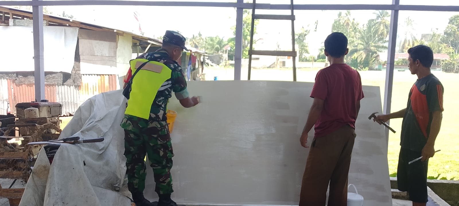 Babinsa Koramil 02/Woyla, Laksanakan Karya Bakti Membantu Mengecat Tripblok untuk Dinding Rumah Salah Seorang Warga Desa Binaanya