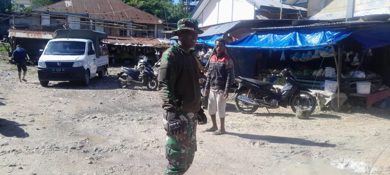 Kegiatan tersebut dilakukan Serda Agustinus bertujuan untuk memantau kondisi keamanan dan ketertiban di lingkungan pasar, serta memantau harga sembako dan ketersediaan bahan pokok yang ada di pasar.