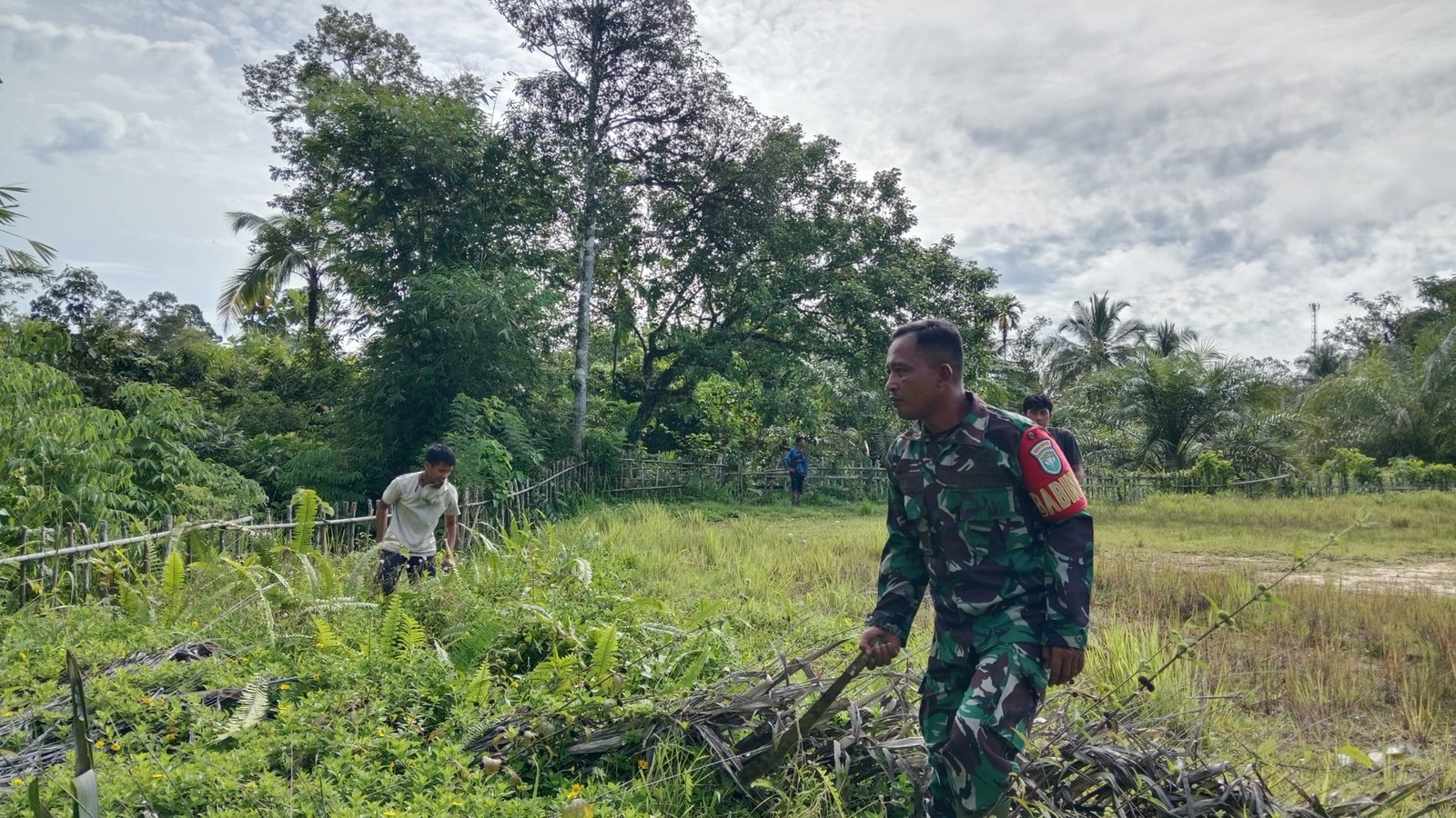 SIMEULUE – Serda Yatno, Babinsa Koramil 06/Teluk Dalam, Kodim 0115/Sml, Korem 012/Tu, melaksanakan gotong royong bersama Babinsa dan warga membersihkan lapangan bola di Desa Bulu Hadik, Kecamatan Teluk Dalam, Kabupaten Simeulue, Selasa (28/04/2026).