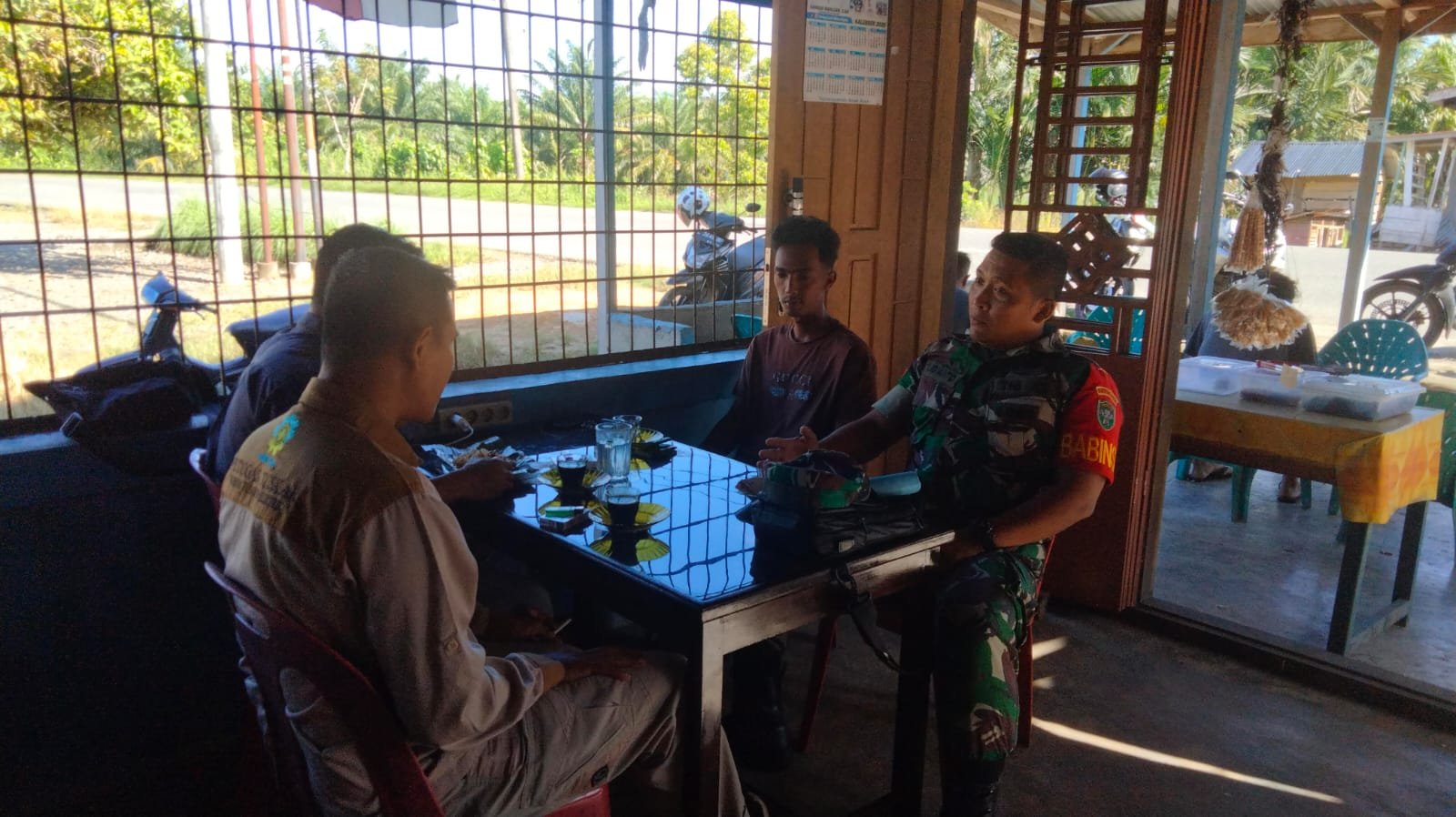 ACEH JAYA — Babinsa Koramil 06/Teunom Kodim 0114/Aceh Jaya, Koptu Sugianto, melaksanakan kegiatan Komunikasi Sosial (Komsos) bersama warga desa binaan di salah satu warung kopi Desa Paya Baro, Kecamatan Teunom, Kabupaten Aceh Jaya, Kamis (22/01/2026).