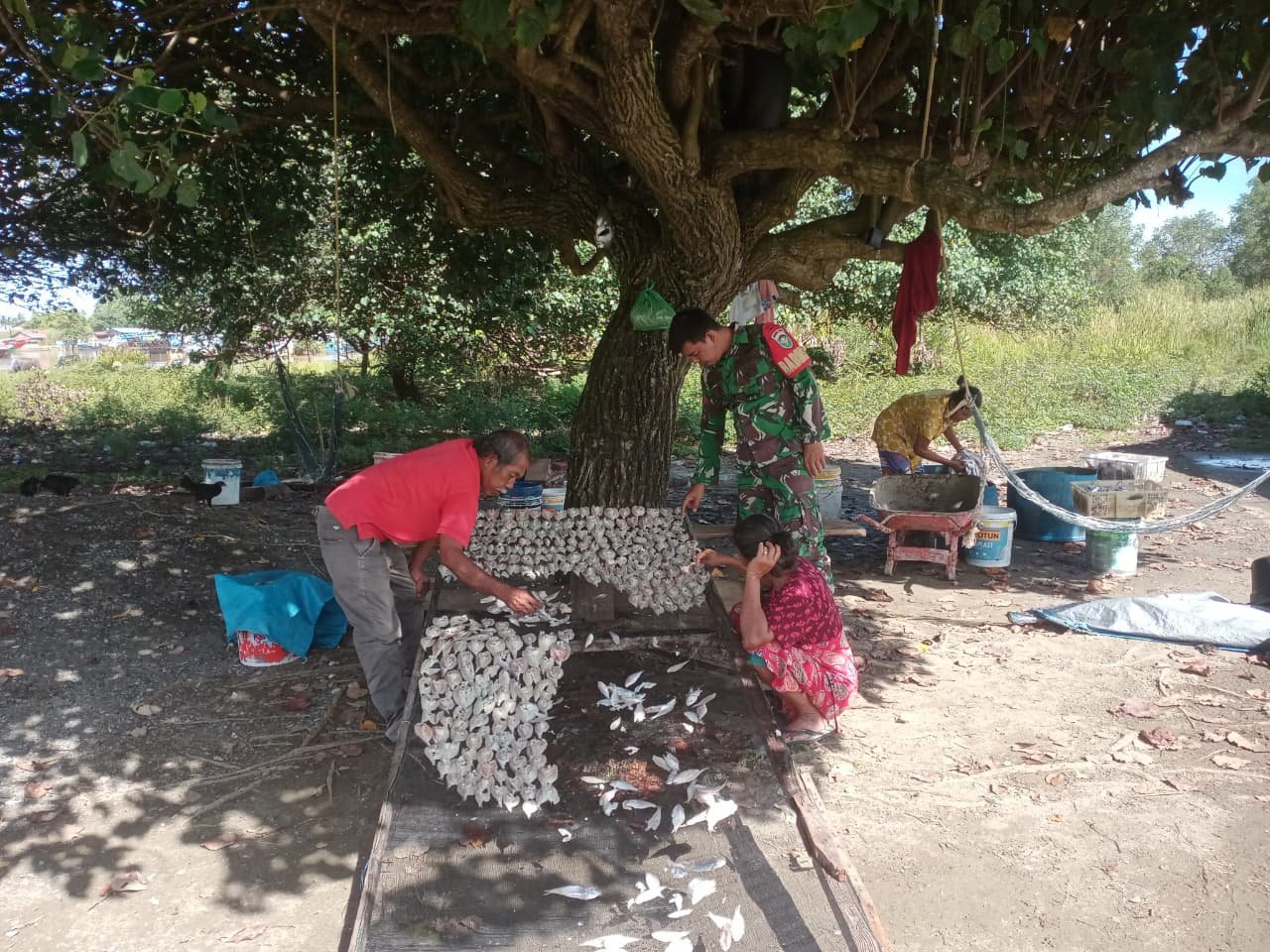Dalam kesempatan tersebut, Praka Ridwan berdialog dengan nelayan mengenai kondisi laut, cuaca, hingga proses pengolahan ikan asin. Ia turut memberikan saran dan motivasi agar kualitas hasil produksi dapat terus meningkat sehingga mampu menunjang perekonomian keluarga nelayan.