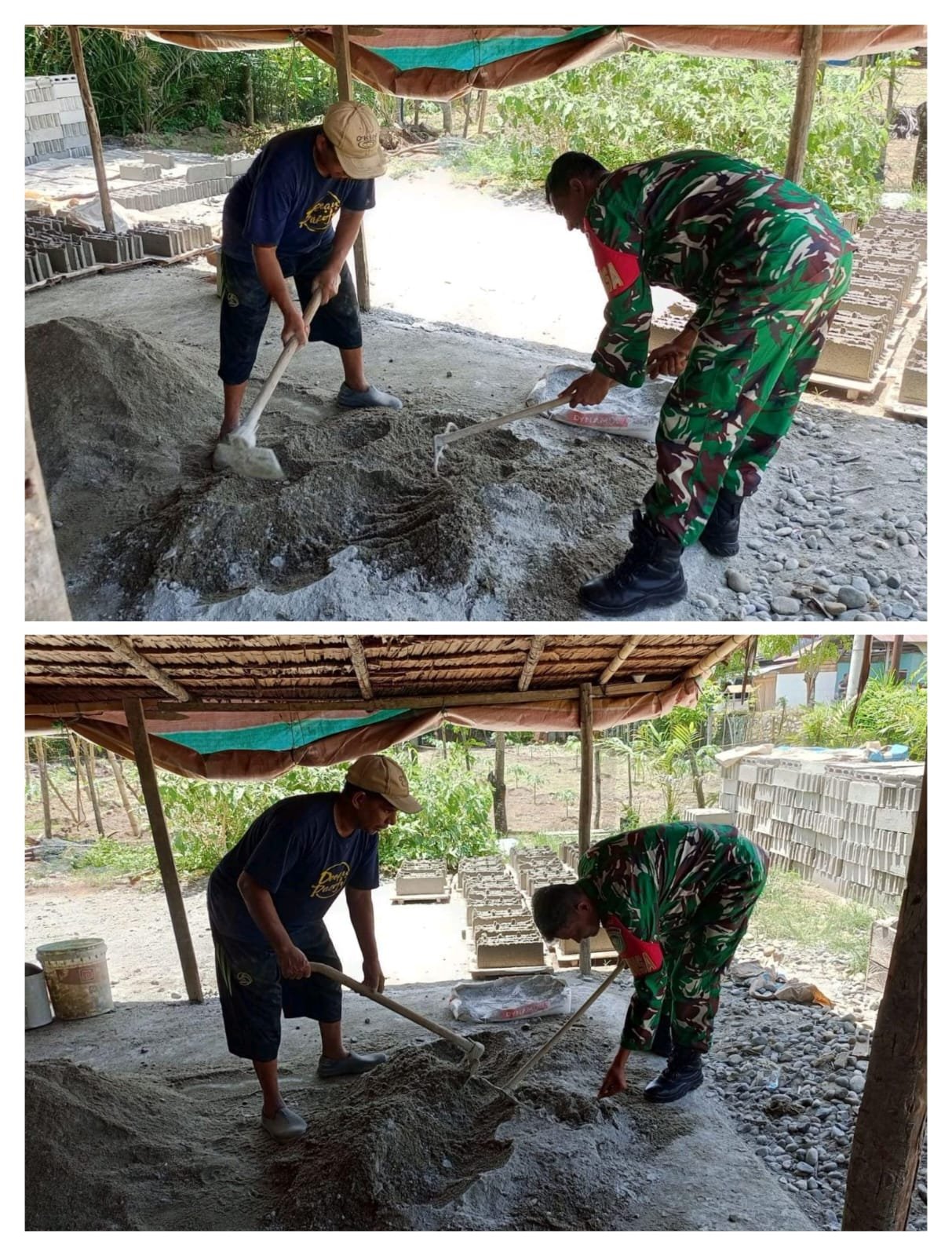 Kegiatan tersebut merupakan bagian dari upaya Babinsa dalam mempererat kemanunggalan TNI dengan rakyat serta mendukung kebutuhan masyarakat di wilayah binaannya. Dengan penuh semangat, Serka Heri J terjun langsung membantu warga dalam proses pembuatan batako yang akan digunakan untuk pembangunan rumah dan fasilitas lainnya.